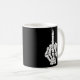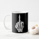 Design gráfico de mão esqueletal elegante, expressando uma atitude irreverente com um solteiro, gesto de dedo elevado.