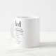 Celebre seu herói de sempre com esta hilária e animadora Mug de Definição de Pai! Perfeito para Dia de os pais, aniversários, Natal, ou só porque, esta caneca apresenta uma definição divertida de "pai" no estilo do dicionário que atinge todas as notas certas — do assassino de aranhas ao contador de piadas terríveis. Personalize e personalize o texto para colocar sua própria rotação engraçada. Ideal para presentes do Dia do Pai, presentes de aniversário de pai engraçados, bolinhos de natal ou canecas do Office para pais. Quer ele esteja bebendo café matinal ou mostrando-o orgulhosamente em sua mesa, esta caneca certamente o fará sorrir.