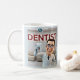 Um dentista profissional feliz segurando um dente. Ele está bem vestido com um uniforme elegante e apresentável e está rodeado por equipamento profissional numa atmosfera de dentista. Você pode personalizar facilmente estas canecas de café de barato de acordo com suas necessidades. O presente perfeito para o seu dentista favorito.