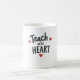 Comece sua manhã com amor e propósito! Esta caneca minimalista "Ensinar com CORAÇÃO" apresenta texto ousado, escrito à mão e doces corações vermelhos — perfeita para professores que lideram com compaixão. Um presente pensativo e inspirador para educadores, mentores, ou para você. Ideal para a apreciação dos professores, de volta à escola, ou inspiração na sala de aula.