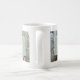 Desert Cactus Monogramas caneca de café, com uma imagem verde de pera picante e uma borda verde e branca. Com um texto personalizável branco, você pode adicionar seu próprio texto inicial. Excelente de adicionar um toque do deserto a sudoeste à sua bebida quente favorita.