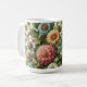 Padrão floral botânico vítreo, com um jardim exuberante de flores florescentes, incluindo rosas, margaridas e dahlias, cercado por um intrincado verde. Ideal para amantes de estética de vintage, chique e cottagecore.