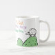 Mug para uma enfermeira distrital. Cartoon engraçado de uma ovelha no topo de uma colina. A ovelha diz "Melhor Baaa Nenhum". Design repete-se de ambos os lados.