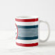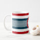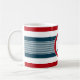 Design náutico com decoração em forma redonda com âncora sobre fundo listrado a azul, vermelho e branco
