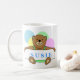 Urso de ursinho bonito que mantem o sinal da bandeira personalizado com nome. Círculos de cor Pastel no fundo