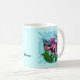 Dewdrop Butterfly Iris Mug, t-shirts e presentes por ArtMuvz Illustration. Camisa íris para jardinagem, roupa de jardineiro, avental de jardim. Para personalizar, adicione seu nome ou adicione texto. Personalize esta caneca de flores para torná-la exclusivamente sua ou para dar como presente personalizado
