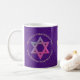 BURACA DE café DO DIA DE HOLOCAUST Roxo, mostrando uma estrela grande de David e a redação SEMPRE SE LEMBRA, PORTANTO NUNCA ESQUECEMOS. Há um padrão de fundo sutil. Todo o texto é PERSONALIZÁVEL para que você possa alterar, substituir e personalizar com seu texto preferido, ou nome de alguém amado, ou seu próprio nome. O design é repetido no verso e, entre eles, há um MONOGRAM PERSONALIZÁVEL que você pode substituir pelo inicial. Escolha entre uma ampla seleção de presentes e recursos relacionados ao Holocausto para planejar seus eventos privados e públicos, projetados por Designs Bereanos.
