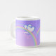 Uma caneca com minha arte digital original de dois corações brancos e azuis sobre um arco-íris em um céu cor de malva ou lilás. O texto personalizável diz "Feliz Dia das Mães".