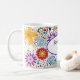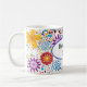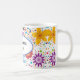 Esta caneca de café cerâmica é mostrada com um adorável design floral brilhante e colorido com uma mensagem para a mãe. Personalize este item ou comprar como está. Imagem do stock