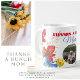 Uma caneca de café com um monte de flores com as palavras 'Obrigado a Bunch' Mãe. A caneca também tem um lugar para sua foto. Presente simples e bonito de Dia de as mães. De um alcance nas Designs Finas de Chessie.
