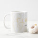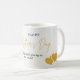 Esta elegante caneca de Dia de as mães apresenta um desenho minimalista de linha de ouro de uma mãe segurando seu bebê, criando uma cena tenra e íntima. O texto "Dia de as mães Feliz" aparece em uma letra de guião na moda dourada, acompanhada da mensagem sincera "Obrigado por nos dar o mundo!" Dois corações de ouro completam o design no fundo creme.