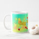 Mug Dia de os namorados projetado de modo intricado em combinações brilhantes de cores com corações, diamantes, pérolas e sol; um presente ideal para a família.