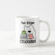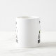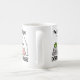 A caneca de café divertida apresenta gatinho, cachorro e pequeno pássaro verde esperando a babá. Para a extraordinária babá de estimação. Design original por S. Fernleaf Designs.