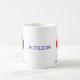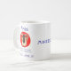 Uma caneca de café branco para alguém nascido sob o sinal do Aries, com uma imagem de uma ram, de uma pintura do watercolour por Judy Adamson, parte dianteira e parte traseira. Igualmente na caneca está a palavra "Aries" na rotulação azul, nas datas e nos quatro traços os mais positivos das pessoas inferior nascido este sinal. Cartões e presentes de harmonização também disponíveis.