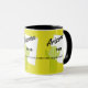 O design da caneca de café com a inscrição "1912," "Arizona" e "The Grand Canyon State" é colorido de amarelo. Isso a torna ideal para café ou chá nas manhãs. Ela é segura para uso na micro-ondas e na máquina de lavar louça.
