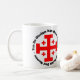 Esta caneca clássica mostra uma das cruzes tradicionais dos cavaleiros de Templar. Isto igualmente tem o credo Latin dos cavaleiros, que traduzido frouxamente nos é "não, senhor, não a nós mas a seu nome dê a glória".