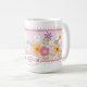 Surpreenda alguém especial com um presente único para o Dia dos Namorados. Esta caneca de café apresenta um design floral alegre, bolinhas divertidas, bordas com recorte em ondas na moda e passarinhos fofos para um toque caprichoso. O que diferencia esta caneca é a capacidade de adicionar um toque pessoal com texto personalizável. Expresse seu amor e gratidão com sentimentos como “Feliz Dia dos Namorados” ou “Melhor Mãe do Mundo”. Crie um presente significativo para uma mulher especial em sua vida.