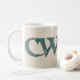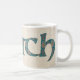 Uma caneca de café do divertimento com a palavra "cwtch" de Galês, significando o "afago" ou o "abraço", em um roteiro celta, encheu-se com um teste padrão à moda de Paisley em um fundo do linho-olhar.