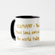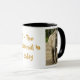 Uma caneca de 11 onças com uma imagem da cor completa de um elefante nele.