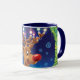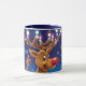 Caneca de café do Natal, Rudolph e luzes feitos sob encomenda. Azuis.