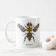 Esta caneca bonita caracteriza um teste padrão da edredão da abelha do mel do brilho criado com blocos digitais da edredão em cores clássicas de preto, de branco e de amarelo com toques da turquesa, do azul, do roxo e do verde. Coordena com nossa borboleta de monarca surpreendente, diva legal da libélula, a borboleta de dança de Swallowtail, e coleções pretas modernas do teste padrão da edredão da placa de Dresden. Peça diversos padrões para o senhor mesmo ou aqueles presentes da surpresa para seus amigos abelha-loving e natureza-loving! Você pode suprimir ou para mudar o texto com "personalize" o modelo. Seja certo ver todas as opções do estilo no vidro cerâmico e de fosco! © a imprensa da edredão