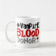 Frase, do "doador de sangue vampiro" na pia batismal infame preta & vermelha. A cruz médica preta no canto superior & em um vidro de vinho encheu-se com o sangue situado no canto diagonal oposto.