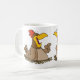 Um casal de galinhas do estilo cartoon conversando entre si. Esta design parece realmente eficaz nestas Mug