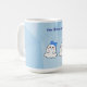 Uma caneca adorável com fundo abstrato e dois pequenos fantasmas nela. Uma maneira divertida de celebrar seus gêmeos!