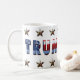 Design patriótico que apoia Donald Trump na raça presidencial. A palavra "TRUNFO" colocado entre duas fileiras das estrelas de prata, reflete a bandeira americana em sua superfície.