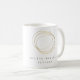 Coordena-se com o Logotipo Escrivível Mínimo e Moderno do Designer no Modelo de cartão de negócios Dourado até 1201AM. Um manuscrito de ouro falso e desenhado à mão em um padrão circular torna-se um logotipo não convencional, porém moderno e abstrato nesta caneca personalizada. Seu nome ou nome da empresa está aterrado em um conjunto de fontes mínimo em um fundo branco. Este design faz parte de uma série de material de escritório para ajudar a marca da sua empresa. Arte original e design © 1201AM Design Studio | www.1201am.com