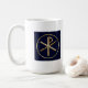 Caneca De Café Dourado no símbolo Chi-Rho azul escuro