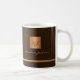 Uma caneca de café com aparência exclusiva de luxo ou monogramas, contendo um quadrado de ouro metálico esfregado em cobre, falso, com as suas iniciais de nome de monograma e uma faixa de aparência metálica sobre uma textura de couro na moda escuro e castanho escuro (IMPRESSO). ++++++++++++++ Adequado para pequenas empresas, profissionais empresariais ou independentes, especialistas em marcas pessoais ou estilistas, artistas de maquiagem ou salões de beleza, gerentes de boutique ou loja.