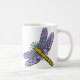 Uma libélula bonito desenhando com corações e espirais amorosos incorporados às asas. O motivo é repetido em ambos os lados da caneca.
