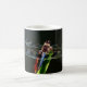 Caneca De Café Dragonfly azul e preta sobre a grama verde e verme