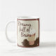 Um bonitinho e divertido estilo cartoon bebida quente saborosa mocha café sonha cheio de feijão café slogan divertido bebida quente mug design tasty cozinheirinho java viciado amante de café latte bebida divertida deluxe café cerâmico ou caneca de cacau Obtenha um slogan épico hoje.