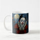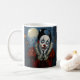 Ilustração melancólica de palhaço em uma fantasia vermelha com cena noturna lunar na caneca de cerâmica, ideal para colecionadores, amantes de arte e fãs de circo. Adicione um toque de elegância teatral ao seu ritual diário com esta caneca de cerâmica com um palhaço melancólico. Com a face branca pintada, lábios vermelhos macios e olhos fechados moldados por um chapéu dramático em forma de crescente e um colarinho recheado, o palhaço repousa pensivamente contra um céu luonado. A fantasia vermelha quente contrasta lindamente com o cenário azul-neblina, criando uma peça que se sente nostálgica, emocional e eterno. Perfeito para colecionadores, entusiastas do circo vintage, ou qualquer pessoa que desfrute de arte expressiva e orientada por histórias em bebidas do dia a dia.