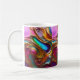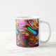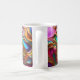 Uma caneca de cerâmica branca e vibrante adornada com padrões robustos e sonhadores. O design apresenta um conjunto de cores macias e pastéis misturando-se umas às outras, criando um efeito calmante e atraente. A caneca tem um tamanho ligeiramente exagerado, com um punho ligeiramente curvado que aumenta a sua sensação confortante e convidativa. Perfeito para beber sua bebida quente favorita enquanto desfruta de um momento de calma e criatividade. As cores evocam a tranquilidade de um pôr do sol, com pincéis de blues, pinks, roças e amarelos, criando uma atmosfera mágica, de outro mundo.