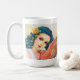 Um duende de cabelo azul e seu pássaro do companheiro, um cockatoo do galah. Esta pintura bonita com a escova macia da cor será um presente perfeito para as pessoas que como caráteres e pássaros da fantasia, naturalmente. Escolha todo o estilo e cor das canecas que você gosta do melhor!