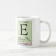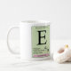 A letra E no alfabeto químico, que representa a configuração estereoquímica Entgegen (trans). Uma caneca inicial de excelente para você, seu amigo ou parente das ciências químicas. Para solicitar um produto personalizado de alfabeto químico, visite mipdatabase.com/products/carequest.php.