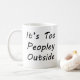 Esta caneca "It's Too Peopley Outside" é o companheiro perfeito para aqueles que preferencialmentes ficam do que socializam. Quer você esteja amaldiçoado no sofá ou brinchando o escritório, esta caneca fica bem no seu humor. Um presente hilário para introvertidos, corpos de casa, ou qualquer um que já teve o suficiente do mundo exterior.
