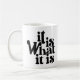 É o que ela é caneca de café, é o que ela está dizendo ser uma caneca divertida com humor.