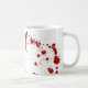 Splatters vermelhos escuro e gotas do sangue da falsificação parva e cómico do falso no fundo branco torrado. Faz um presente engraçado da mordaça, peça de um traje do Dia das Bruxas, ou para fazer apenas pessoas olhar duas vezes.