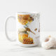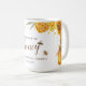 Abelhas voam entre flores amarelas nesta caneca de chá de noiva para afirmar como a noiva "encontrou seu mel". Torna-se o favor perfeito para um chá de noiva, casamento ou casal na primavera, com tema floral amarelo ou abelhas. Isso também pode ser personalizado para uma festa de aniversário ou outra celebração de abelhas na primavera. Disponível com produtos correspondentes.