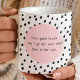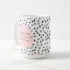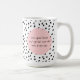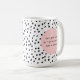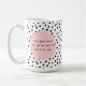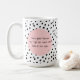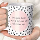Ela Vai Para Sempre Dizer Eu Tenho Isso Caneca de Café Motivacional. Este design inspirador apresenta pontos polka pretos e brancos abstratos modernos com uma moldura de círculo rosa desenhada. A citação diz "Ela vai para sempre dizer 'Eu tenho isso' mesmo com lágrimas nos olhos". O presente perfeito de encorajamento para mulheres fortes que fazem tudo sozinhas com pura força.