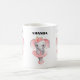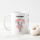 Uma caneca com uma ilustração adorável. Um elefante feminino cinza com um tutu cor-de-rosa e um balé dançante de flores, parado nos dedos das suas pernas.