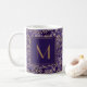 Caneca De Café Elegância Moderna Ameixa Roxo Folhas de Ouro Monog