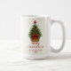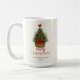 Enjoy your favorite holiday drinks in this charming Christmas mug featuring a beautifully illustrated mini Christmas tree in a woven basket, decorated with red berries and a classic red bow. The clean white background and festive colors make it the perfect mug for cozy winter mornings, hot cocoa nights, and Christmas gatherings.