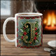 Caneca De Café Elegant Gold Holly Christmas Initial Letter J
