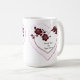 A decorative heart-shaped card featuring a burgundy border, pink floral accents, and two red roses, perfect for romance, weddings, or Valentine’s Day greetings.