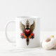 A caneca é de excelente qualidade, de bom peso e aparenta resistentência. O tamanho grande da caneca de 444 ml é muito prático, ela serve até para sobremesas. A alça é do tamanho certo para empunhadura, e oferece grande firmeza. A impressão ficou perfeita, a imagem ficou completamente nítida, e as cores vivas como na imagem do site.